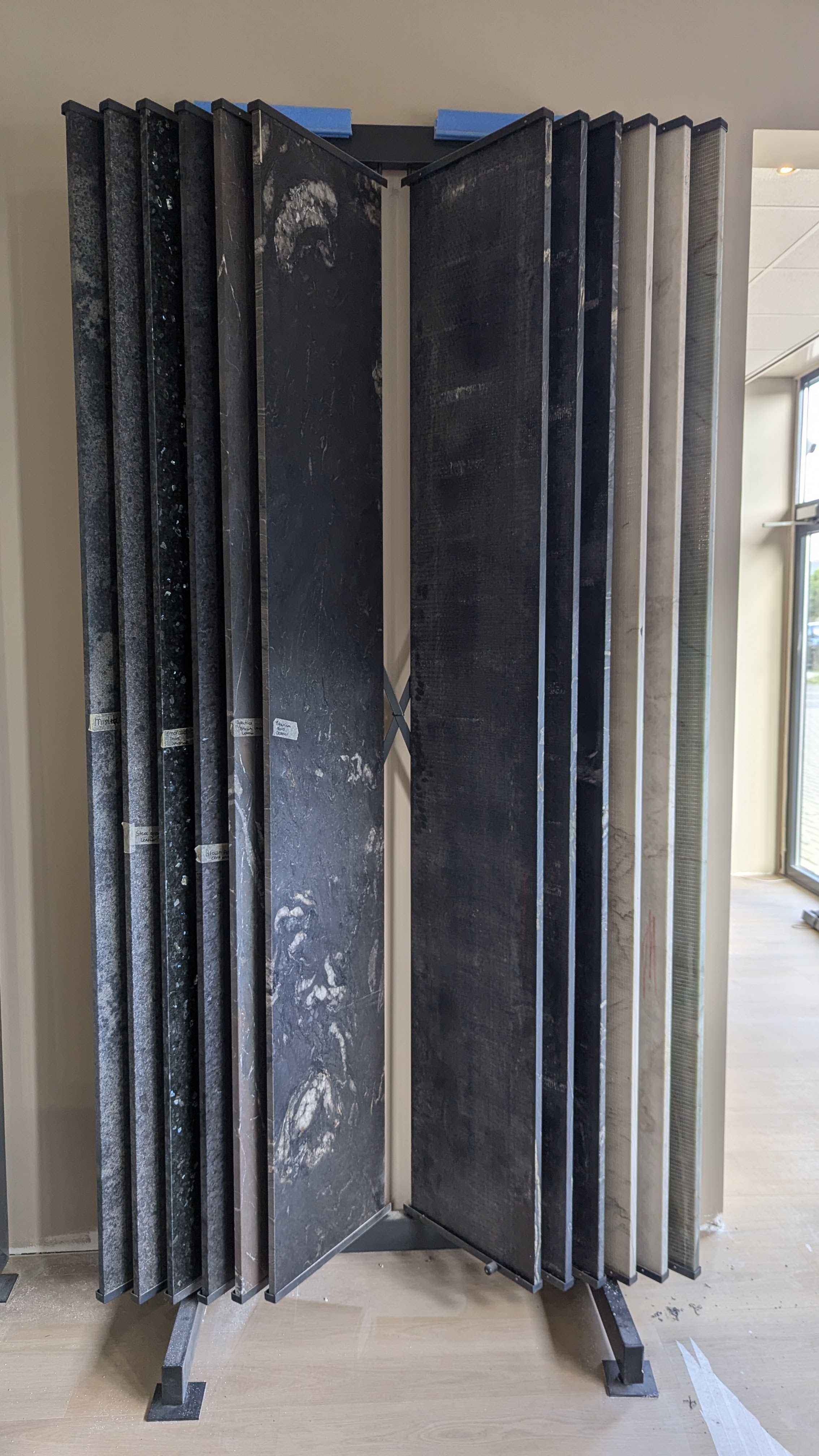 Dit frame is ontworpen en gemaakt voor een showroom, door dit frame zijn de tekeningen van de stenen compleet zichtbaar.